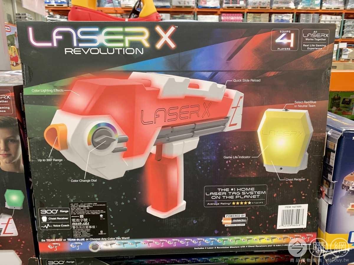 室內雷射槍戰遊戲,射程皆可至90公尺,可多人對戰,可經牆壁、玻璃面反射瞄準目標,LASER X產品配件皆可通用,含12顆四號電池。