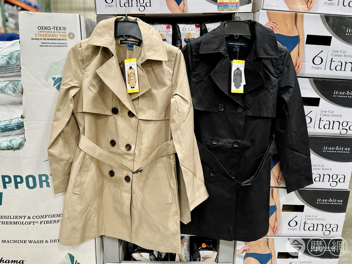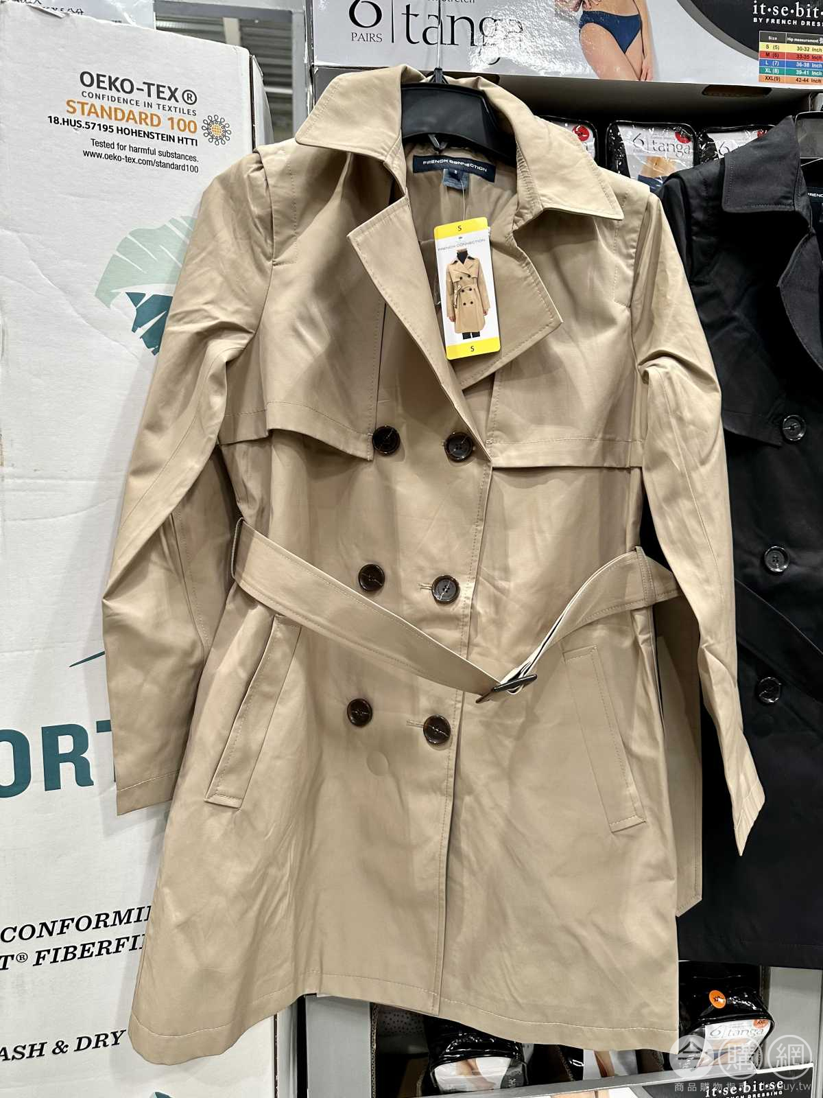 雙排釦設計,修身版型,腰部綁帶可自由調整綁法,兩側雙口袋,置物方便。