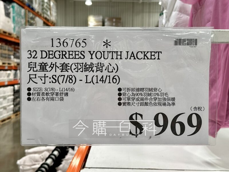 材質柔軟穿著舒適,左右各有兩口袋,可拆卸連帽羽絨背心,背心為90%羽絨10%羽毛,可單穿或兩件合穿加強保暖。