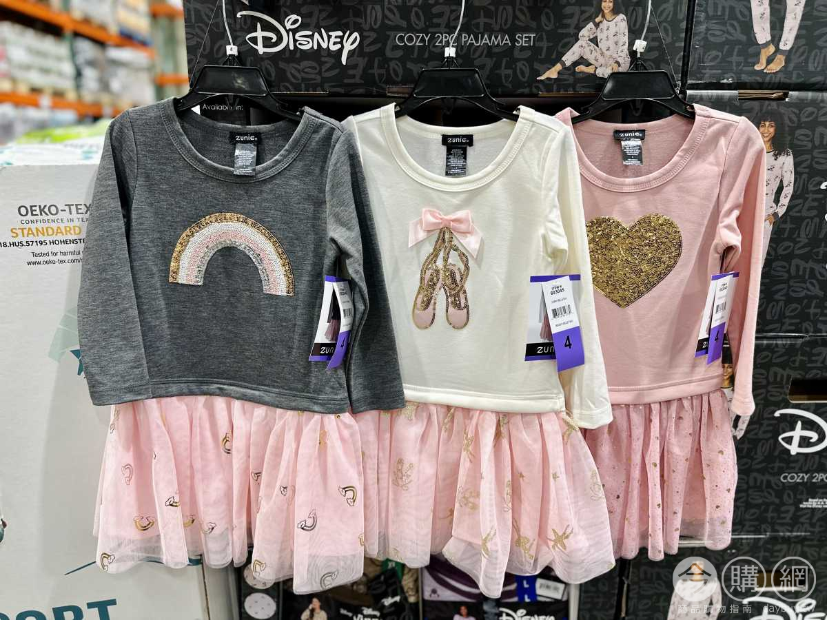 假兩件式連身洋裝,穿著舒適度佳,下身為燙金蕾絲澎澎裙。
