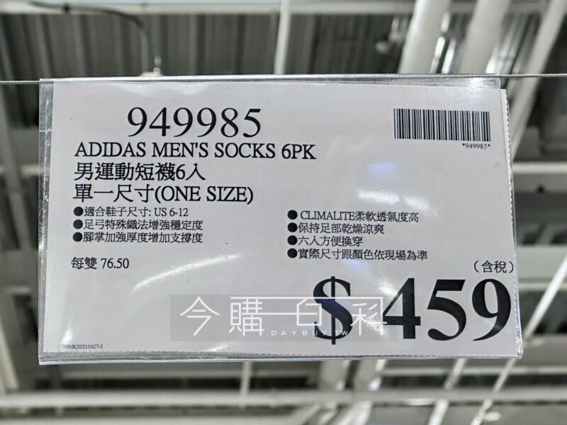 足弓特殊織法增強穩定度,腳掌加強厚度增加支撐度,CLIMALITE柔軟透氣度高,保持足部乾燥涼爽,六入方便換穿。