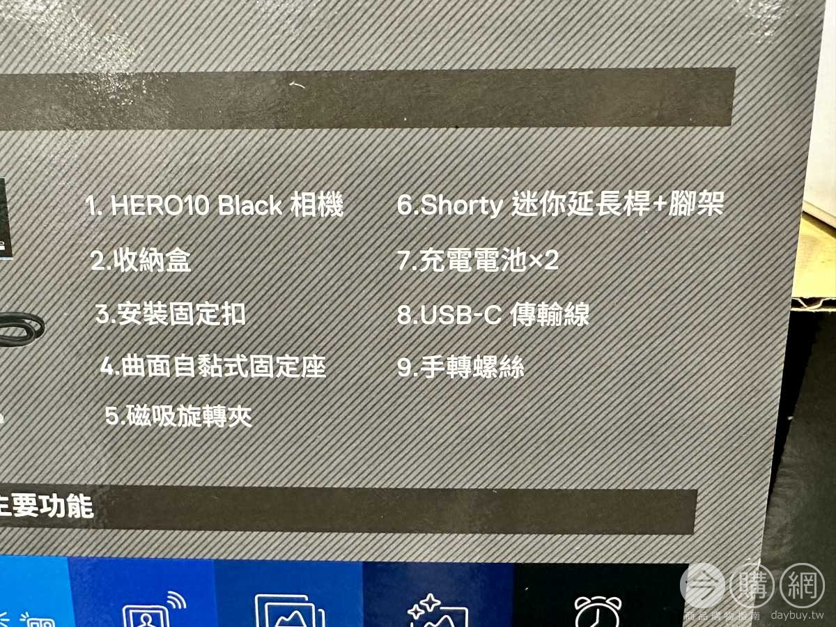 相機2300萬畫素可連拍,防水10M/HYPERSMOOTH 4.0,影像直播1080P,錄影4K 120FPS/GP2處理,附磁吸旋轉夾,附迷你延長桿SHORTY腳架,90天內退貨保證,一年保固。
