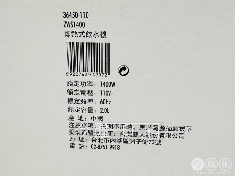 ZWS1400 容量 2公升