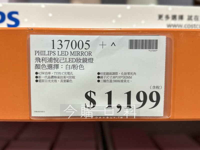4.5W功率,TYPE C充電孔,新一代晶鑽蜂巢技術可防眩,還原日光光效,真實顯色,柔和舒視光技術,亮度記憶,85度鏡面調節,化妝零死角。鏡子尺寸:88*195*282MM,三種色溫:3000K暖黃光、4000K暖白光、5000K白日光。
