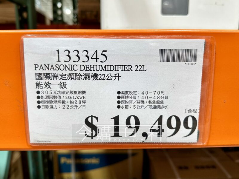 305瓦功率變頻壓縮機,能源因數值:3.06L/KWH,標準除濕坪數:約28,日除濕力:22公升/日,濕度設定:40-70%,運轉分貝:40-48分貝,預約開/關機:APP連線,水箱:5公升/可連續排水。