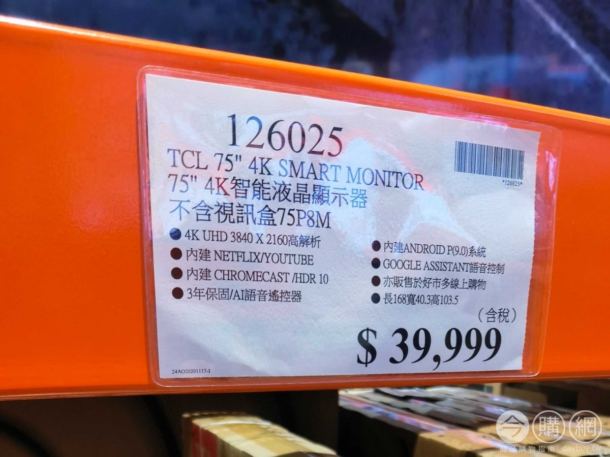 TCL 75吋 4K 智能液晶顯示器 75P8M #126025 https://www.daybuy.tw/costco/48692/
