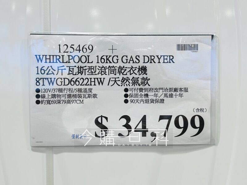 美國原裝進口瓦斯型乾衣機,蒸氣除皺/20分鐘快乾,線上購物可選桶裝瓦斯款,90天內退貨保證,120V/37種行程/5種溫度,可付費到府改門洽原廠客服,保固全機一年/馬達十年,約寬69深79高97CM。