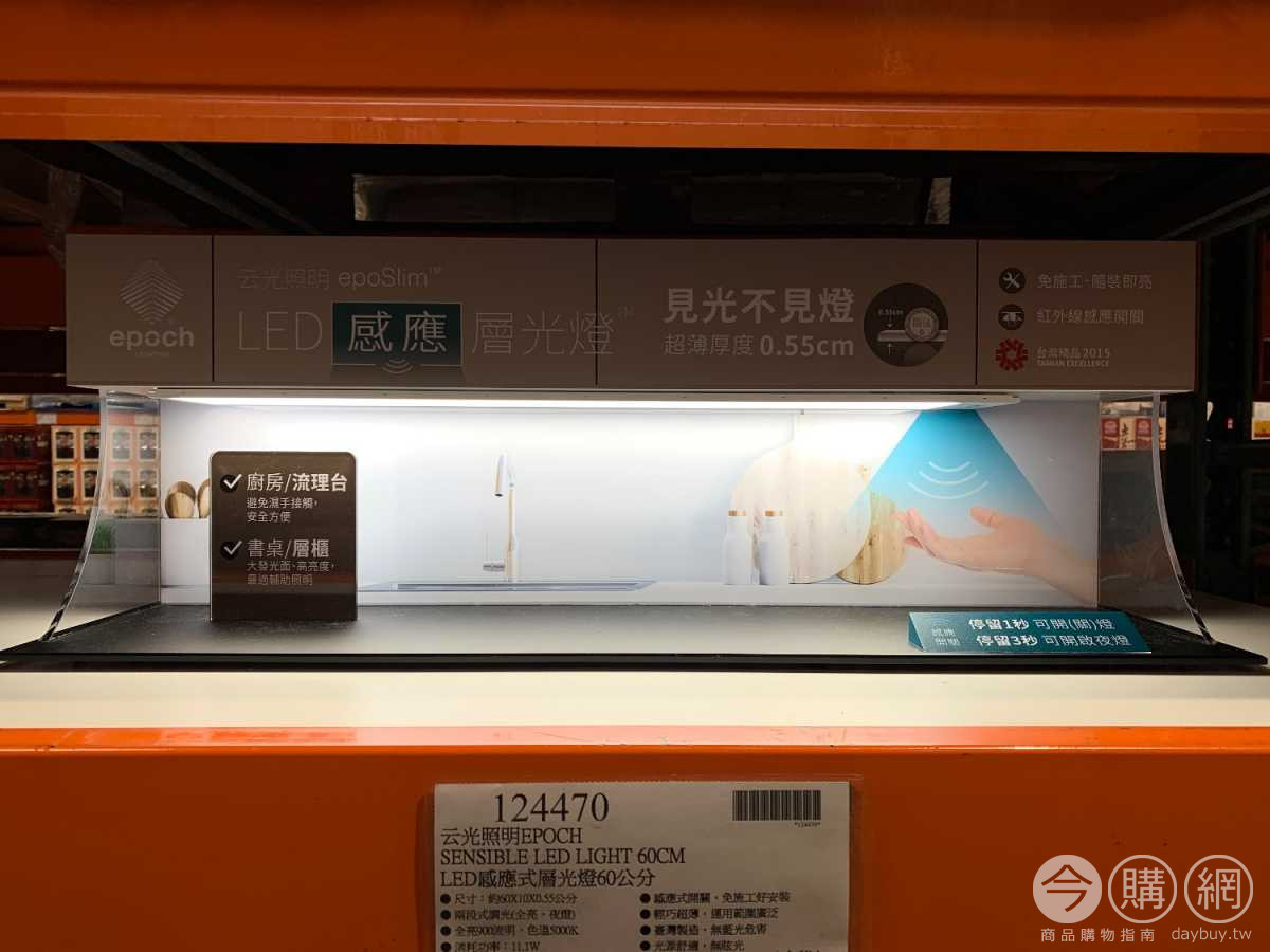 兩段式調光(全亮、夜燈),全亮900流明,色溫5000K,消耗功率:11.1W。感應式開關,免施工好安裝,輕巧超薄,運用範圍廣泛,臺灣製造,無藍光危害,光源舒適,無眩光。