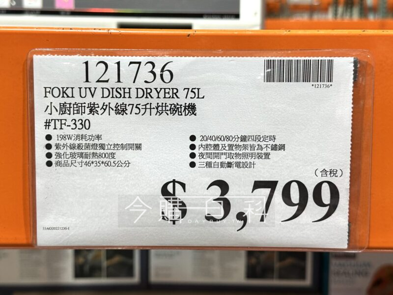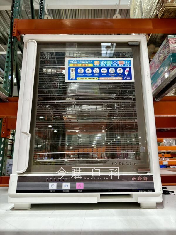 198W消耗功率,紫外線殺菌燈獨立控制開關,強化玻璃耐熱800度,商品尺寸46*35*60.5公分,20/40/60/80分鐘四段定時,內腔體及置物架皆為不銹鋼,夜間開門取物照明裝置,三種自動斷電設計。
