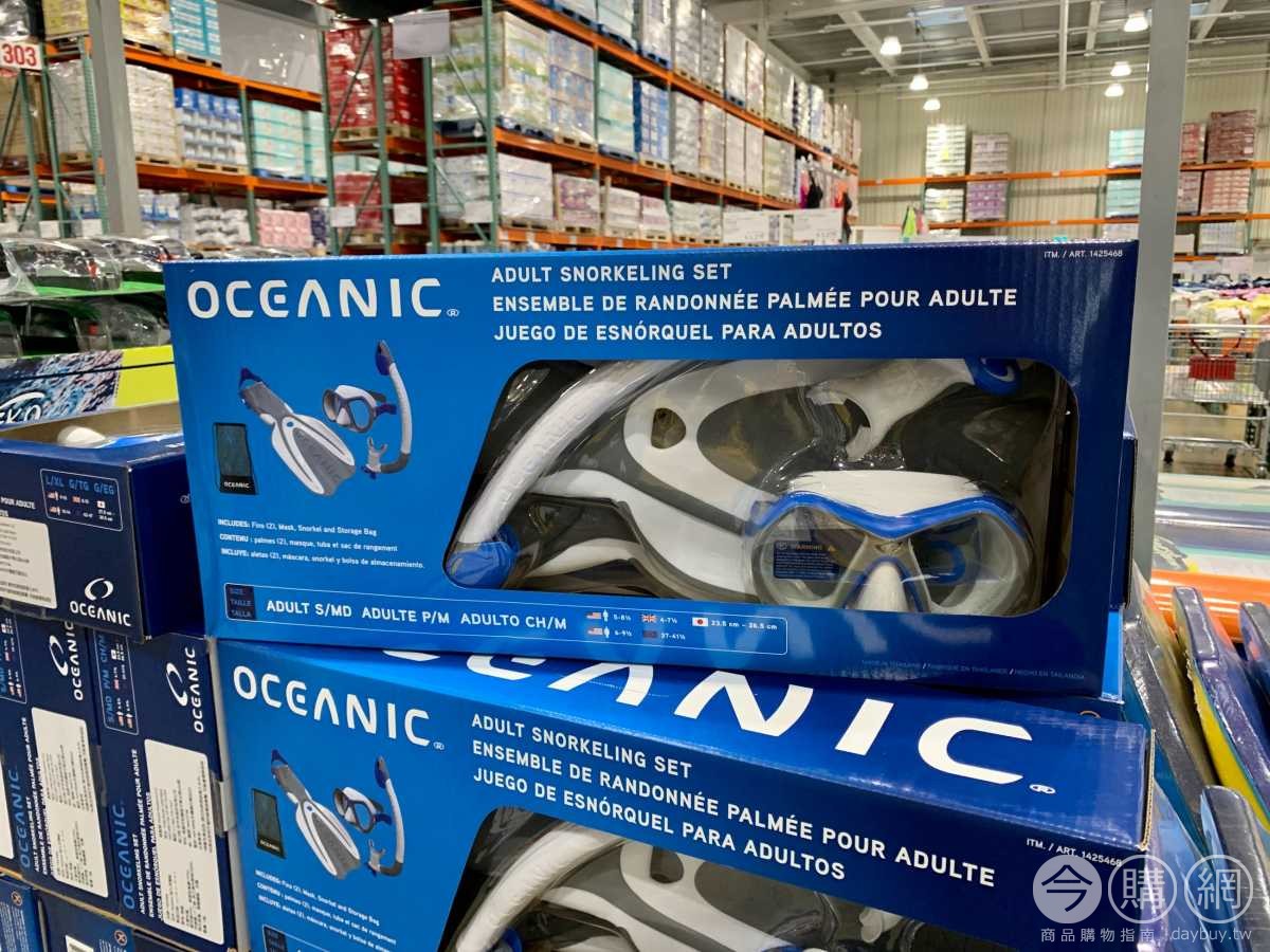 含全浮潛蛙鞋、蛙鞋、呼吸管與收納袋,呼吸管上設計有相機架,可調節式矽膠腳跟束帶,舒適矽膠咬嘴,呼吸管排水閥設計。