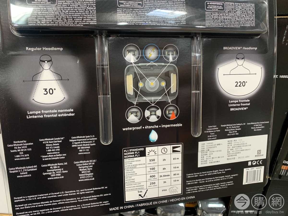 九種光線模式組合可調整,可視範圍達220度,可調整頭帶,每入頭燈附四號電池三顆,含夜視模式,IPX8防水,可調整頭燈角度。