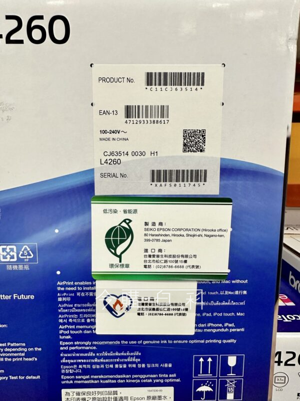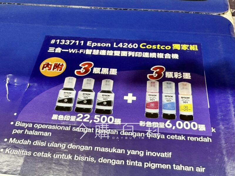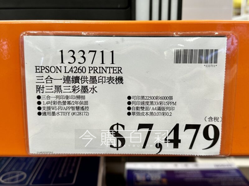 三合一列印/影印/掃描,1.4吋彩色螢幕/2年保固,支援WIFI/APP智慧遙控,適用墨水T03Y(#128172),可印黑22500彩6000張,列印速度黑33/彩15PPM,自動雙面/A4滿版列印,單張成本黑0.07/彩0.2。