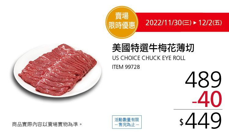 美國特選牛梅花薄切 #99728