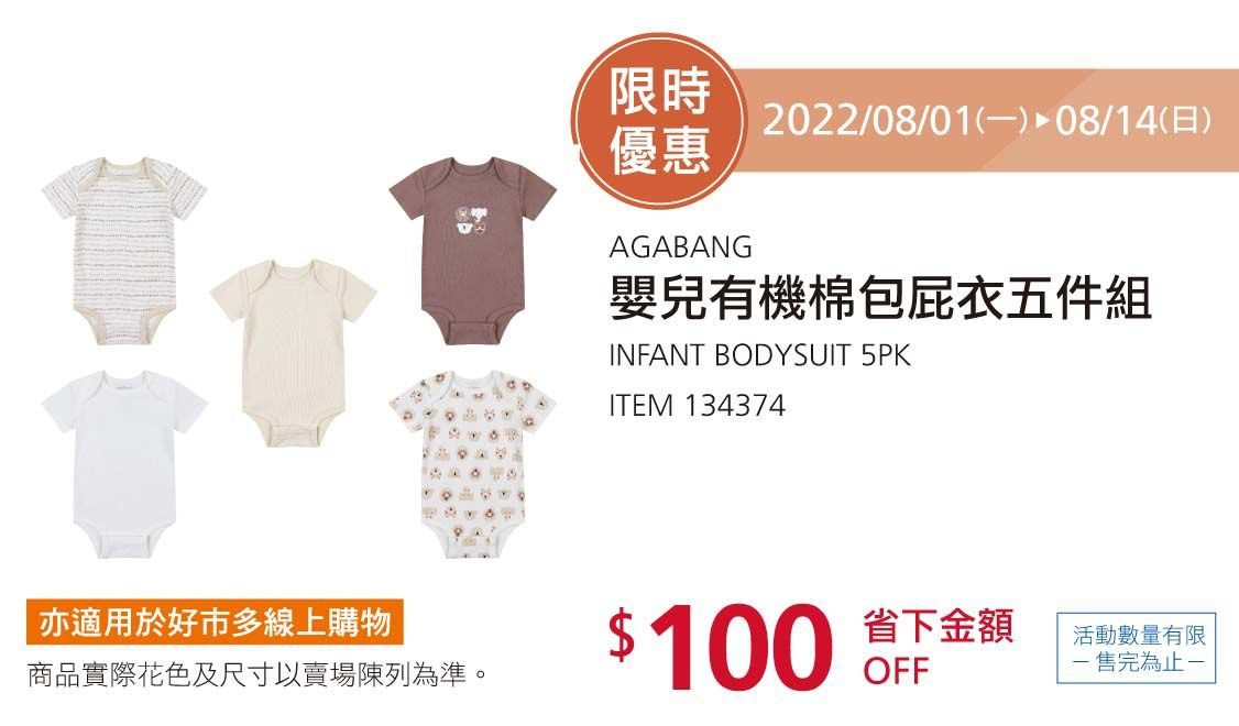 AGABANG 嬰兒有機棉包屁衣五件組 #134374