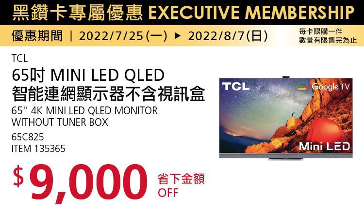TCL 65吋智能連網顯示器(不含視訊盒) 65C825 #135365