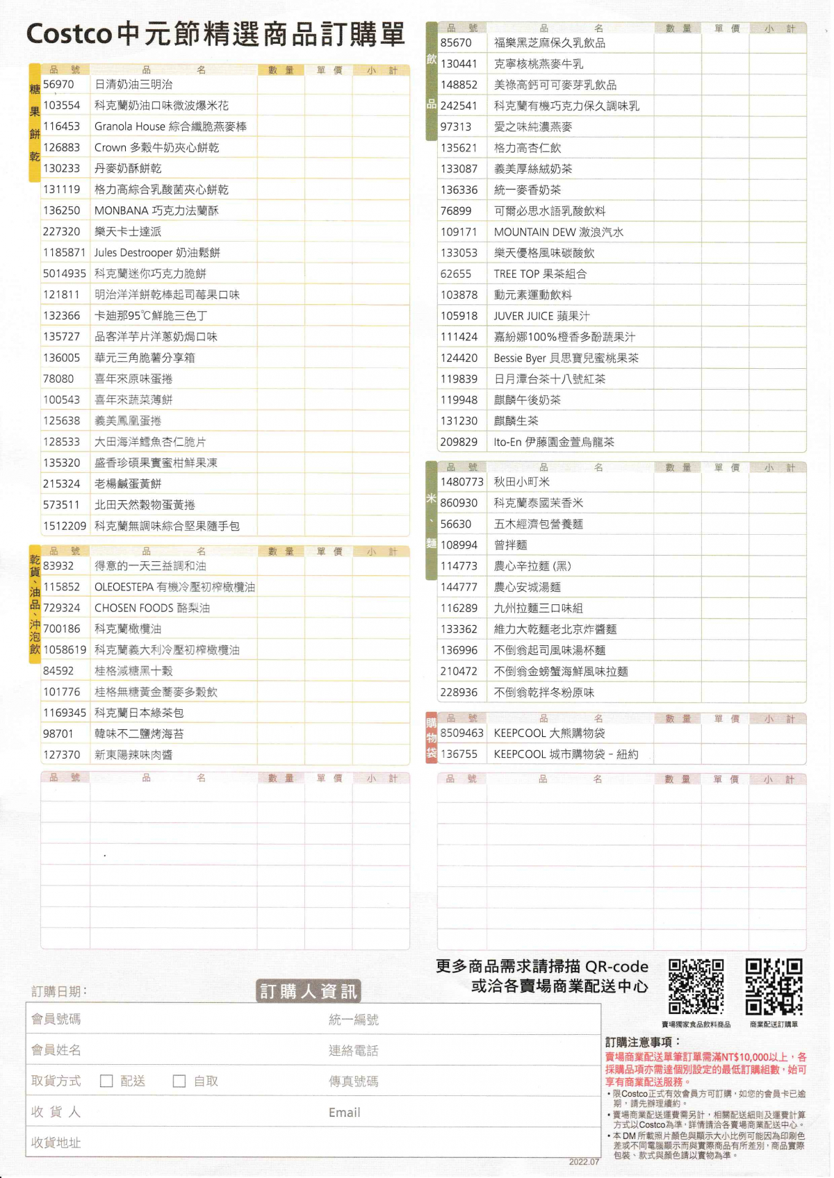 中元普渡 大宗採購單請至COSTCO櫃台拿取