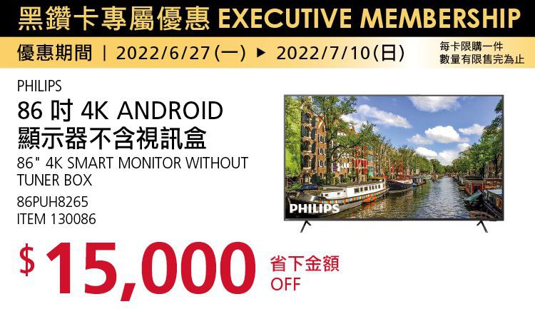PHILIPS 86吋4K ANDROID顯示器(不含視訊盒) #130086