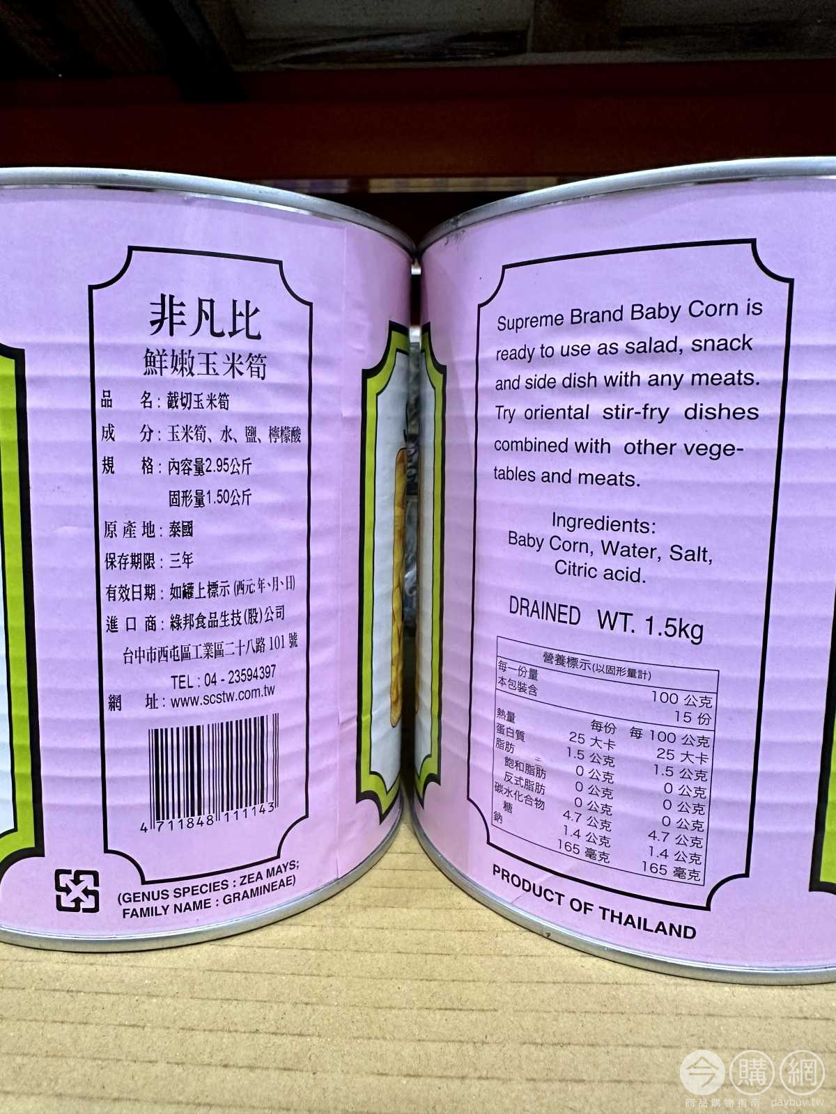 當季收成新鮮玉米筍,無添加防腐劑,不含色素或人工漂白。