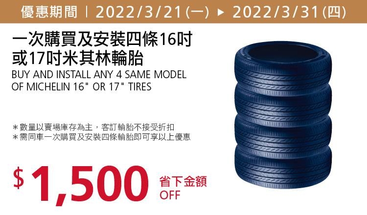 四條16吋或17吋米其林輪胎