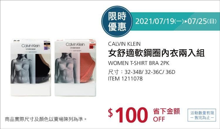 CALVIN KLEIN 女舒適軟鋼圈內衣兩入組 #1211078