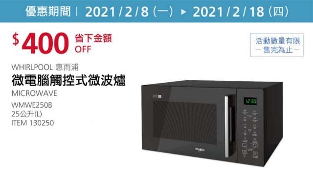 WHIRLPOOL 惠而浦微電腦觸控式微波爐 #130250