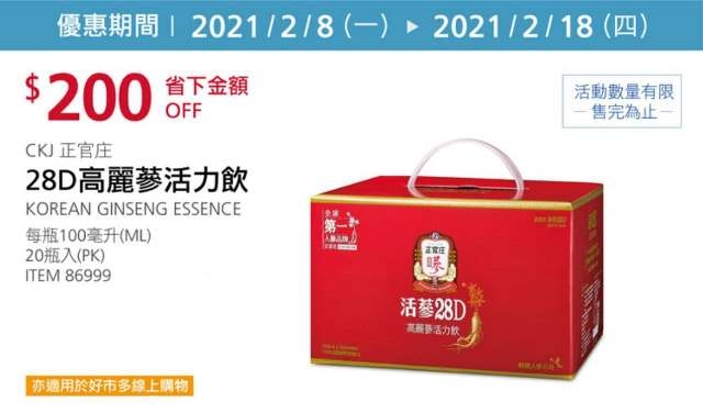 CKJ 正官庄28D高麗蔘活力飲 #86999