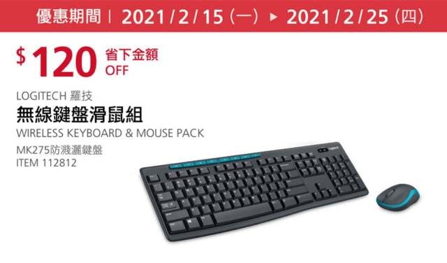羅技 無線鍵盤滑鼠組 MK275 #112812
