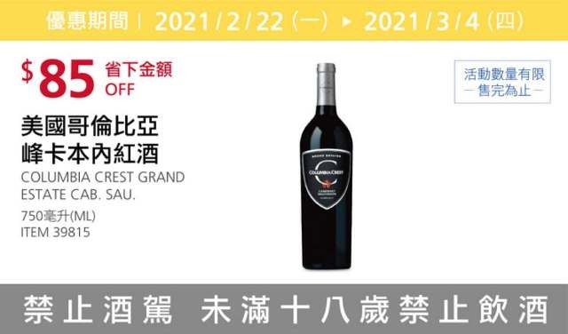 COLUMBIA CREST 美國哥倫比亞蜂卡本內紅酒 #39815