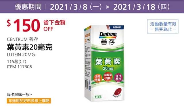 小善存+鈣 綜合維他命 CENTRUM #118326 – 1篇FB開箱