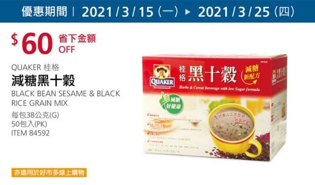 QUAKER 桂格減糖黑十穀 #84592 – 1篇FB開箱