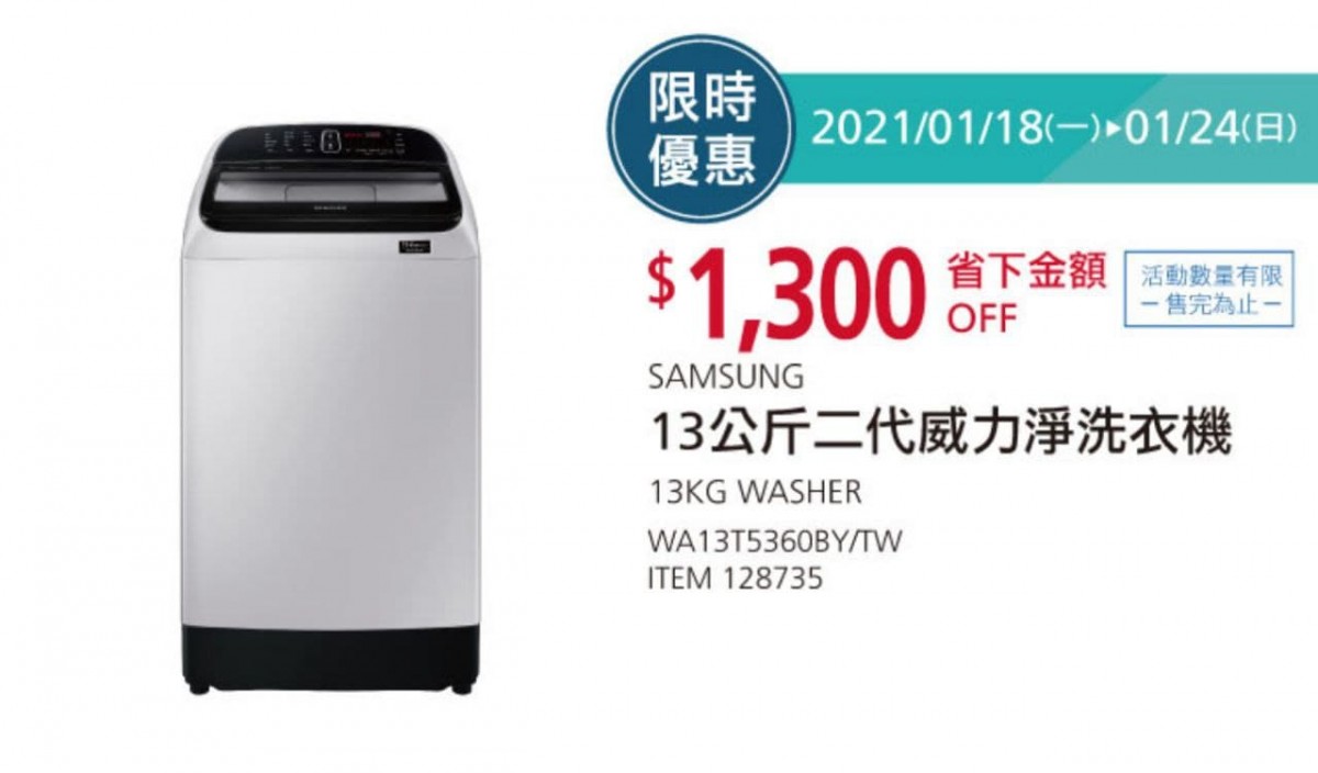 SAMSUNG 13公斤變頻洗衣機 #128735