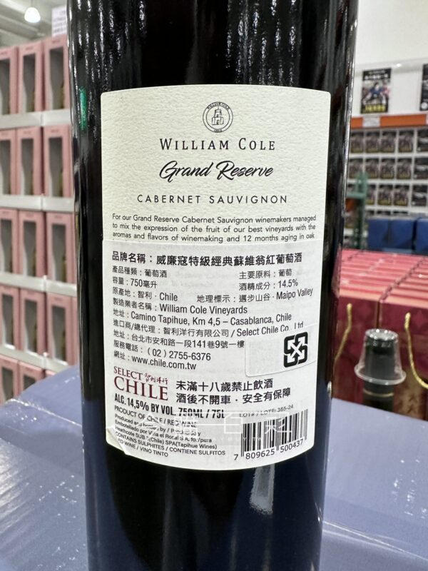 法國橡木桶陳釀12個月,擁有濃郁的黑莓、櫻與李子的香甜果香,深豔紅色。
