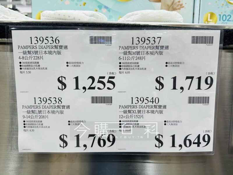 #139536 S號 4-8公斤 228片 1,255元