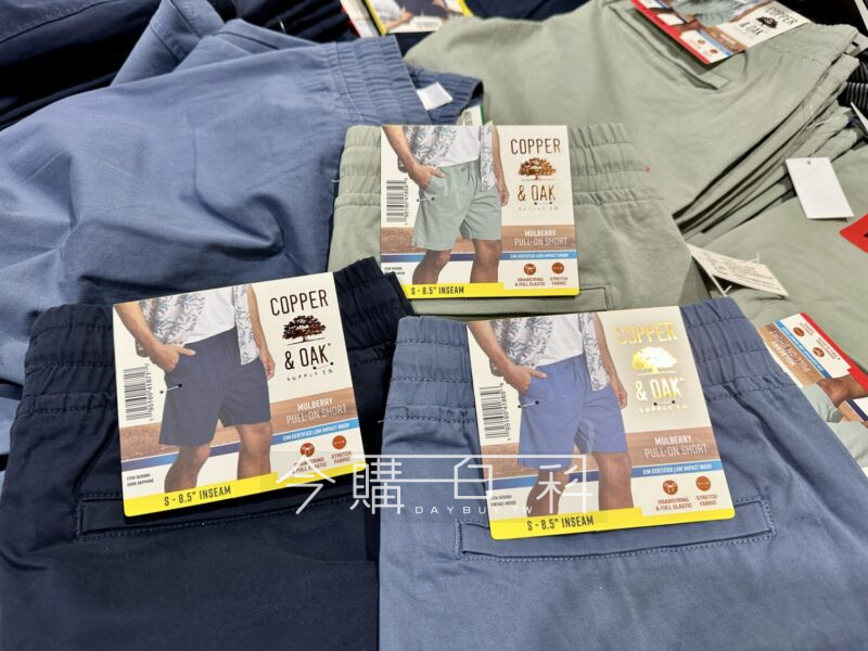 褲長約九吋,材質含2%彈性纖維,四向彈性面料穿著舒適,左右插手口與右後方一口袋,褲頭束繩設計可調整鬆緊。