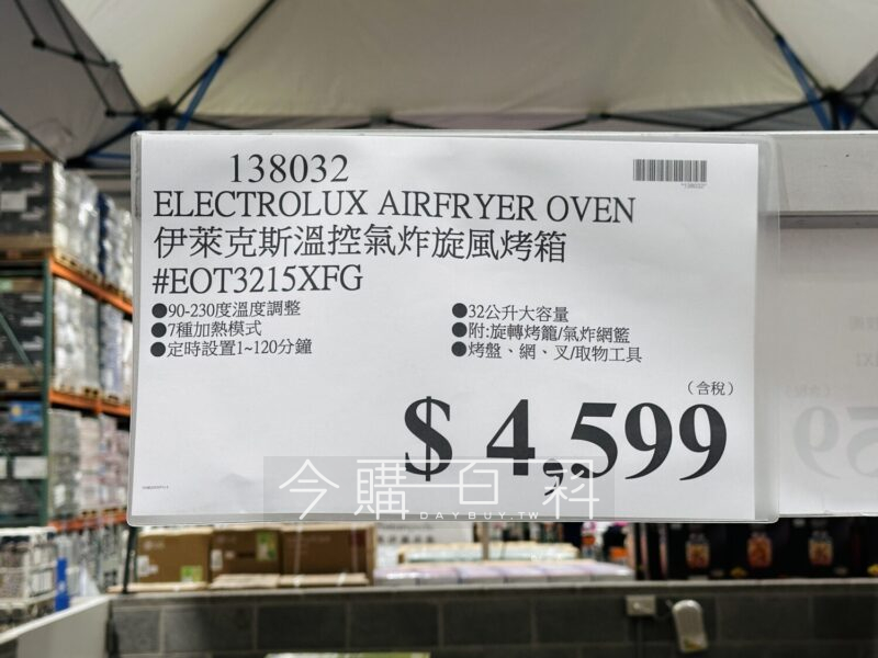 1500W消耗功率氣炸烤箱,32L大容量,不須分次料理,可烘焙燒烤旋轉氣炸及發酵,7種加熱模式滿足各式料理,定時設置1~120分鐘,溫度設置90~230度,附:旋轉烤籠/氣炸網籃、烤盤、網、叉/取物工具。