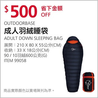 OUTDOORBASE 成人羽絨睡袋600克 #99058