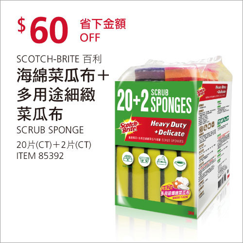 SCOTCH-BRITE 海綿菜瓜布20片+不沾鍋專用菜瓜布2片 #85392