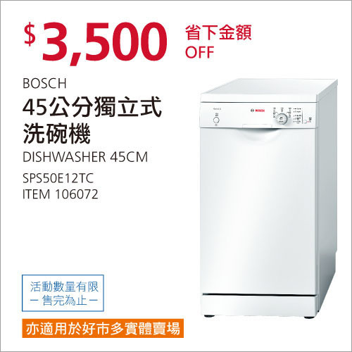 BOSCH 45cm 9人獨立洗碗機 SPS50E12TC #106072