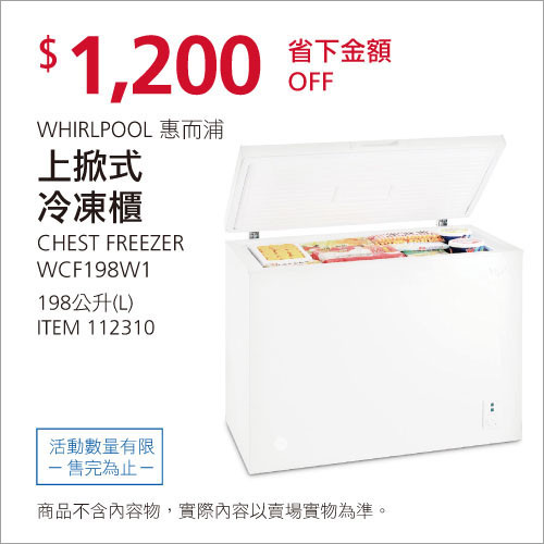 WHIRLPOOL 掀式冷凍櫃198公升 WCF198W1 #112310