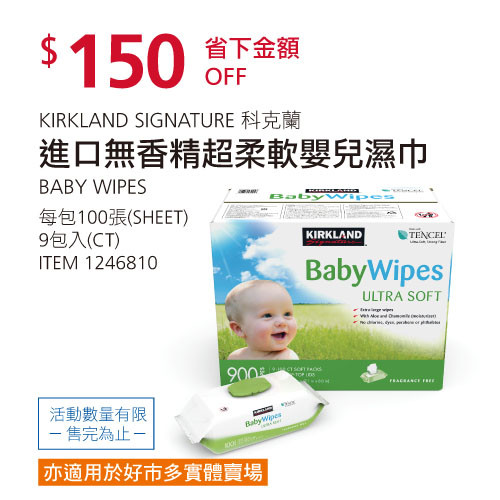 KIRKLAND 超柔軟嬰兒濕巾 #1246810