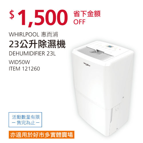 WHIRLPOOL 惠而浦23公升除濕機 WID50W #121260