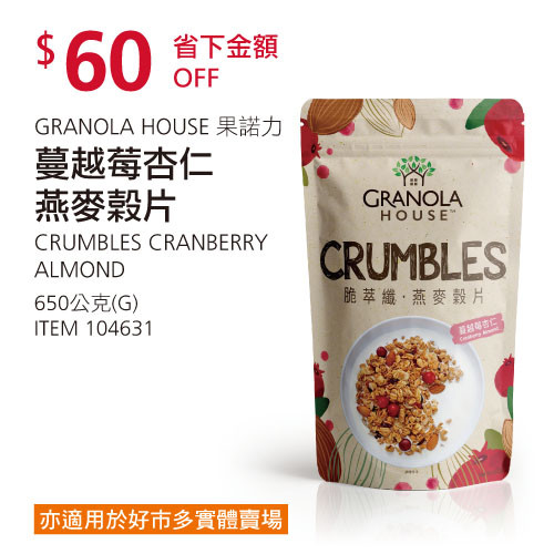 GRANOLA HOUSE 果諾力蔓越莓杏仁燕麥穀片 #104631 – 1 篇FB評論