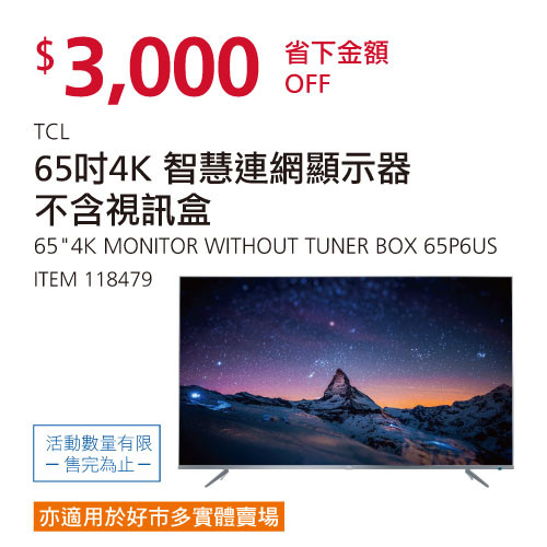 TCL 65吋4K 智慧連網顯示器 不含視訊盒 #118479