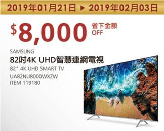 SAMSUNG 82吋4k UHD 智慧連網電視 #119180