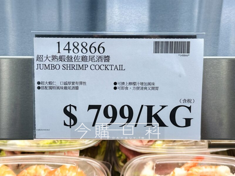 超大蝦仁,口感厚實有彈性,可擠上檸檬汁增加風味,獨特風味雞尾酒醬,可即食,方便清爽又開胃。