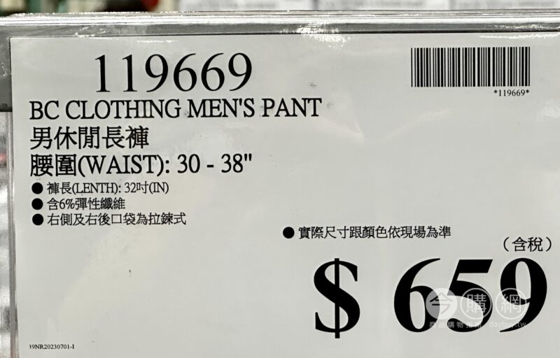 褲長32吋,含6%彈性纖維,右側及右後口袋為拉鍊式。