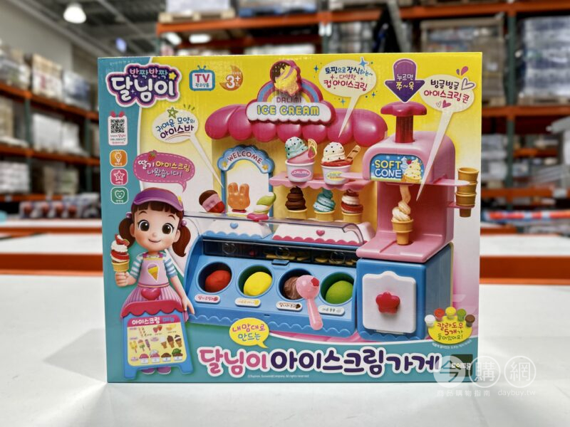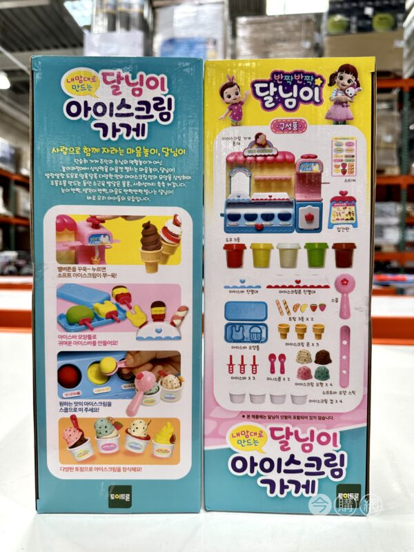 韓國知名卡通角色,內含冰淇淋店本體,多種模具、造型配料及五種顏色的黏土,製作冰棒、冰淇淋、霜淇淋,自由混製五彩繽紛的冰淇淋,黏土不可食用,適用年齡:三歲以上。