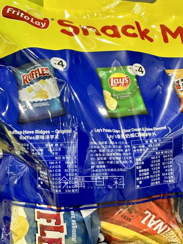 美國經典熱銷口味,小包多入方便攜帶,與朋友聚會分享最佳選擇,每種口味各4包共16包,四種口味一次滿足:香蔥奶焗口味、原味波浪洋芋片、奇多起司玉米脆片棒、FRITOS原味玉米脆片。