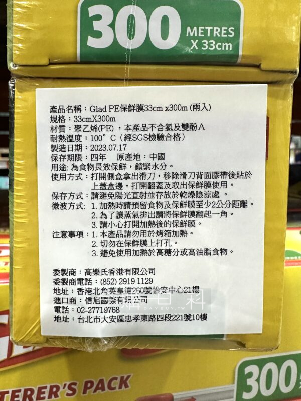 附切割滑刀,方便裁切,每捲33公分*300公尺,PE材質,耐熱溫度100度C。