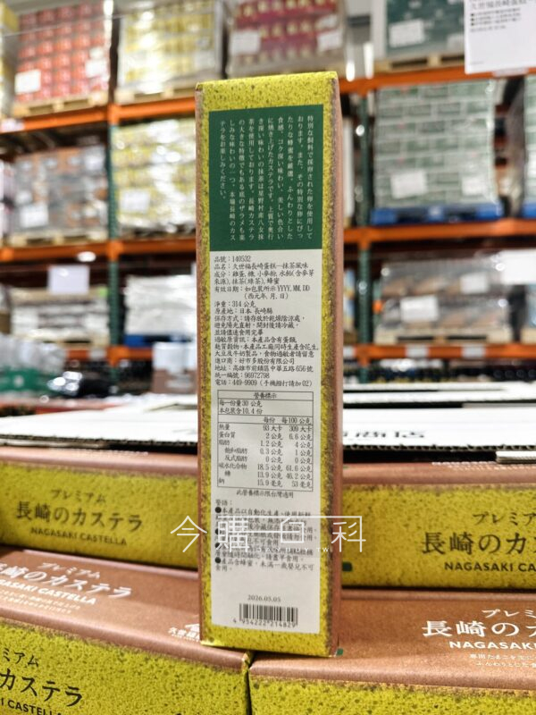 以牧場契作雞蛋四款糖材及福岡縣八女星野抹茶粉,茶香濃郁口感清爽不膩口且柔軟濕潤有彈性的蛋糕體,簡單成分創造不簡單的風味,送禮自用兩宜的甜點選擇,原產地:日本長崎縣。